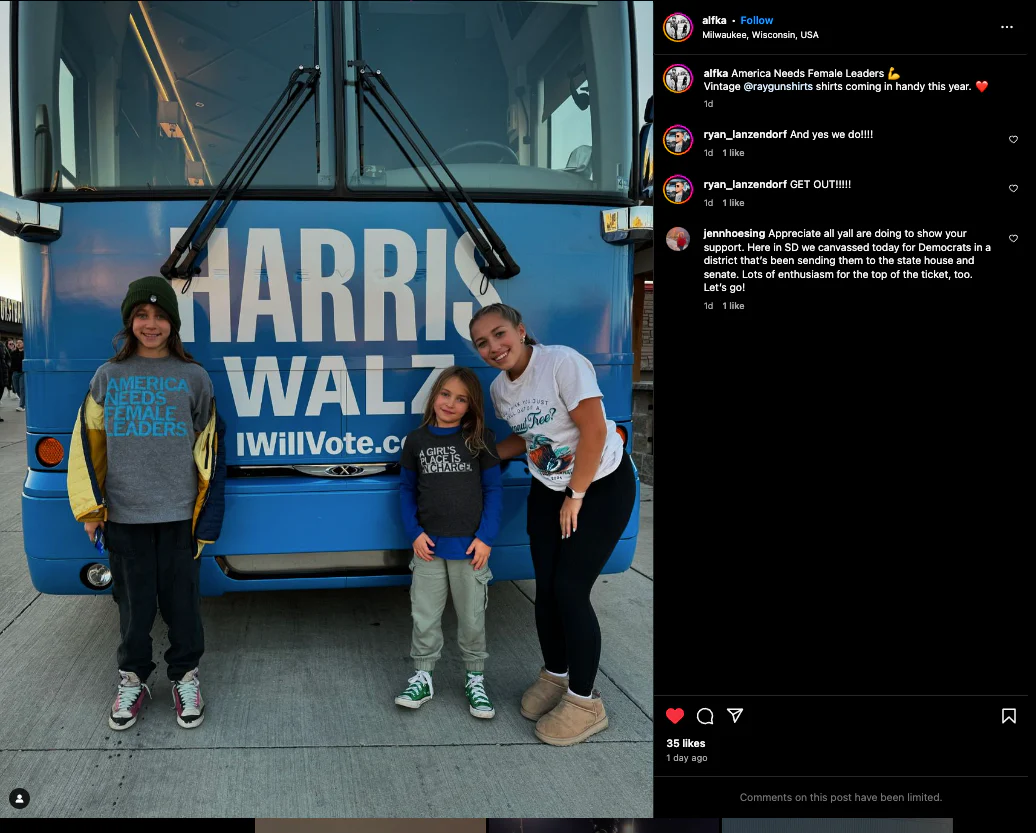 America Needs Female Leaders. A Portion of All RAYGUN Sales Raise Money For Organizations That We Support. Light Blue Screen Print on a Deep Heather Crew Sweatshirt (80% Combed Ringspun Cotton / 20% Polyester). Cut and sewn sweatshop free. Designed and printed by Union Labor at RAYGUN.